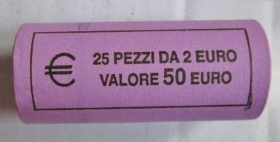 Rotolo della Zecca di stato con 25 monete da 2 euro che commemorano i 2000 anni dalla morte di Tito Livio.Il prezzo è riferito a singolo rotolo da 25 monete da 2 euro.Il rotolo non è mai stato aperto e le monete sono in conservazione fdc
