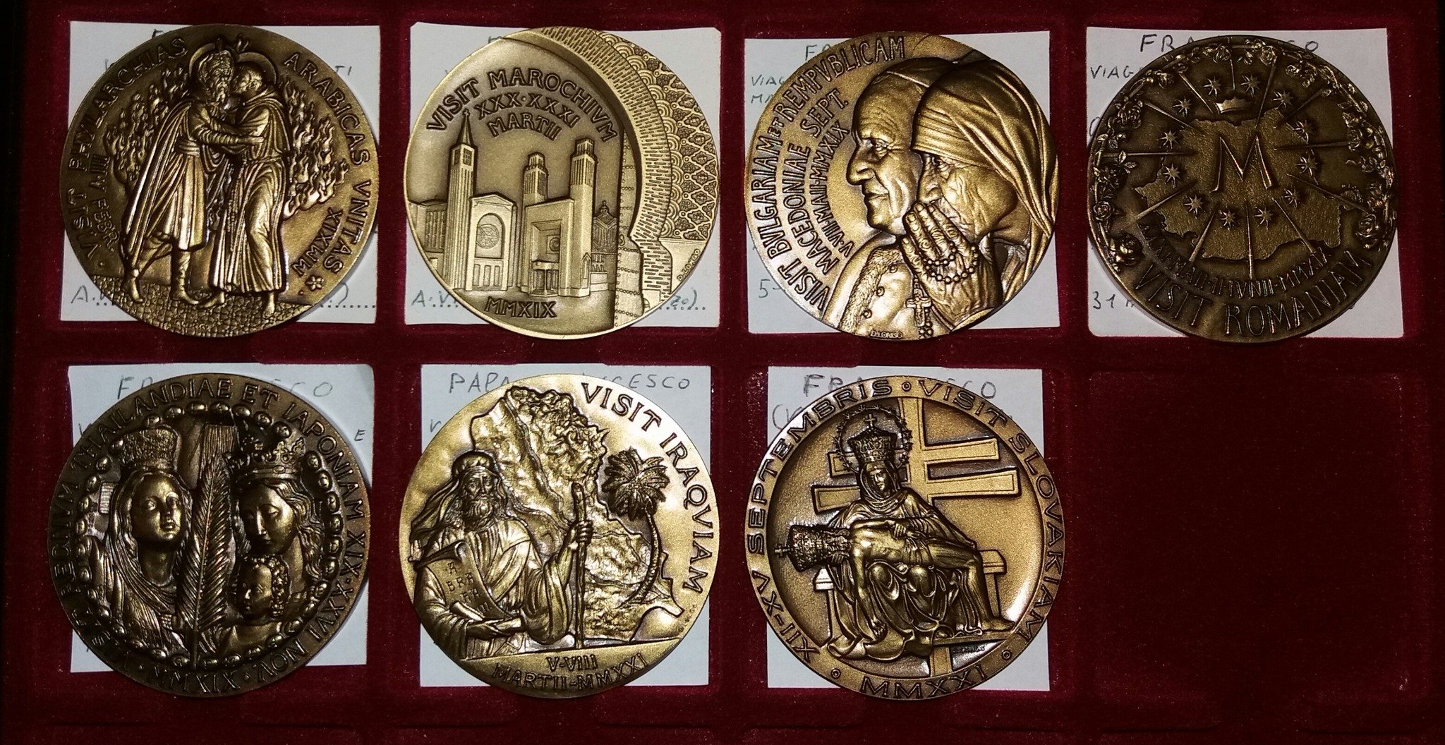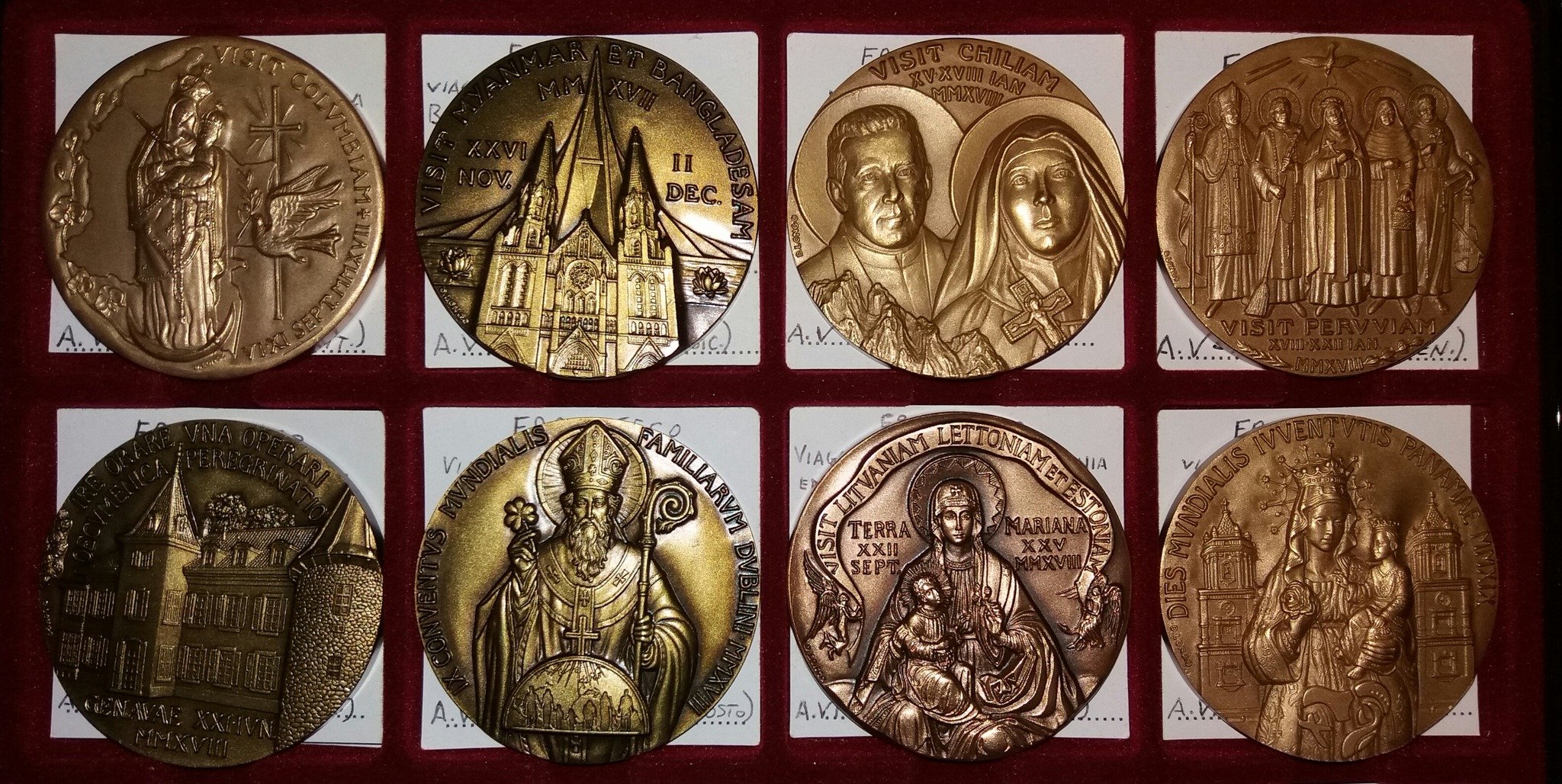 Le medaglie dei viaggi (tutte in bronzo dorato e di 50 mm di diametro, tranne il 1964 che è più piccola) sono state tutte acquistate presso un negozio fisico numismatico. Sono provviste tutte, tranne per gli anni 1964 e 1991, di astuccio originale del Vaticano.