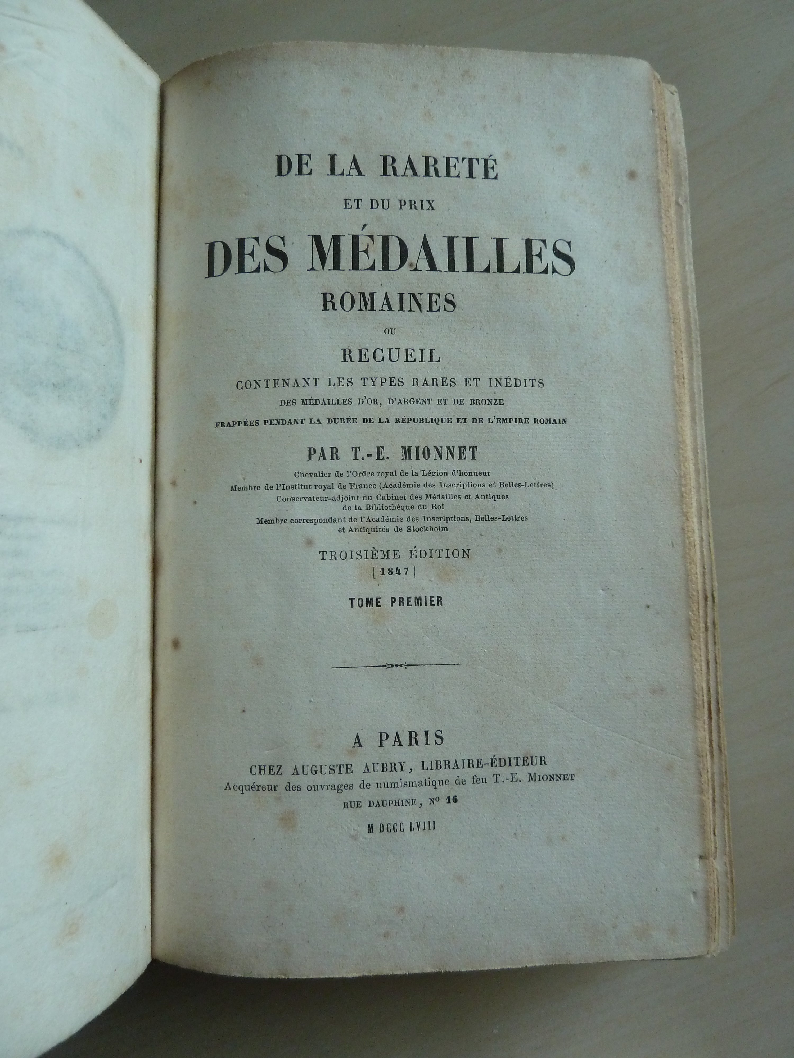 "De la rareté et du prix des médailles romaines" di Mionnet