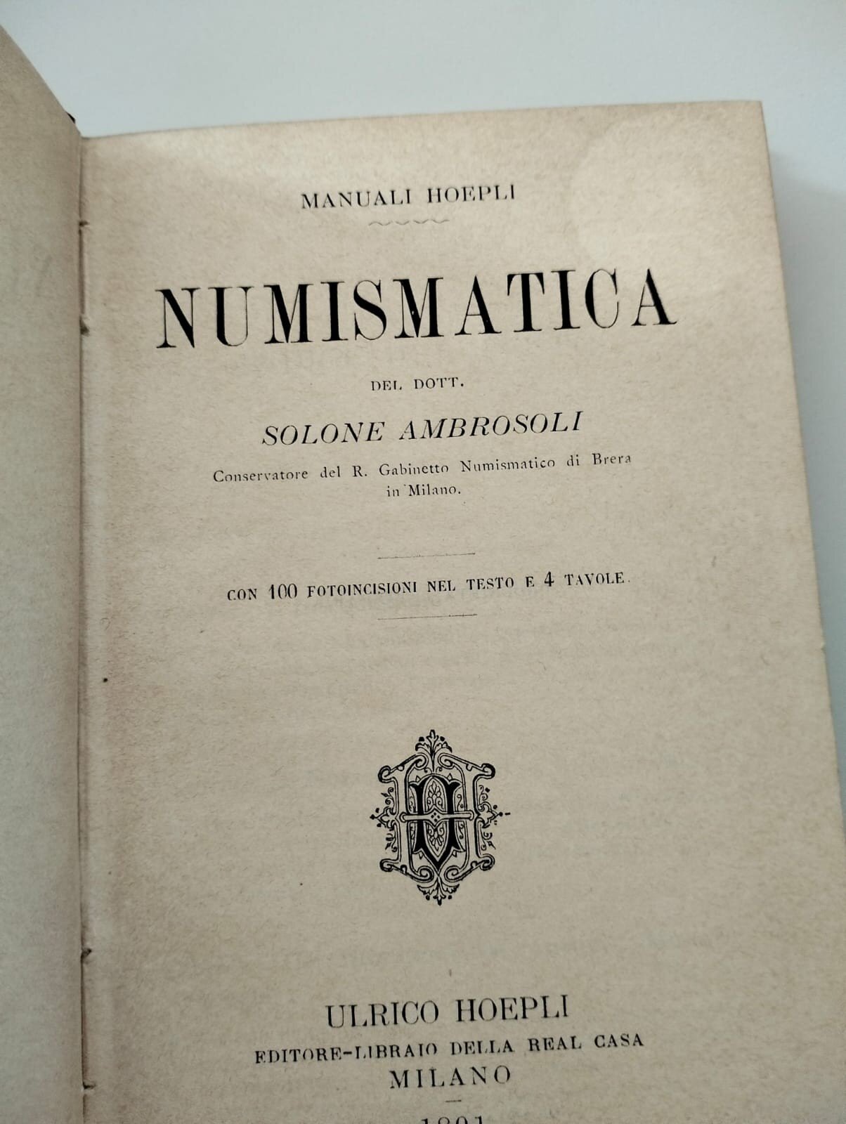 Numismatica Solone Ambrosoli Manuali Ulrico Hoelpi Prima edizione 1891 Perfetto.