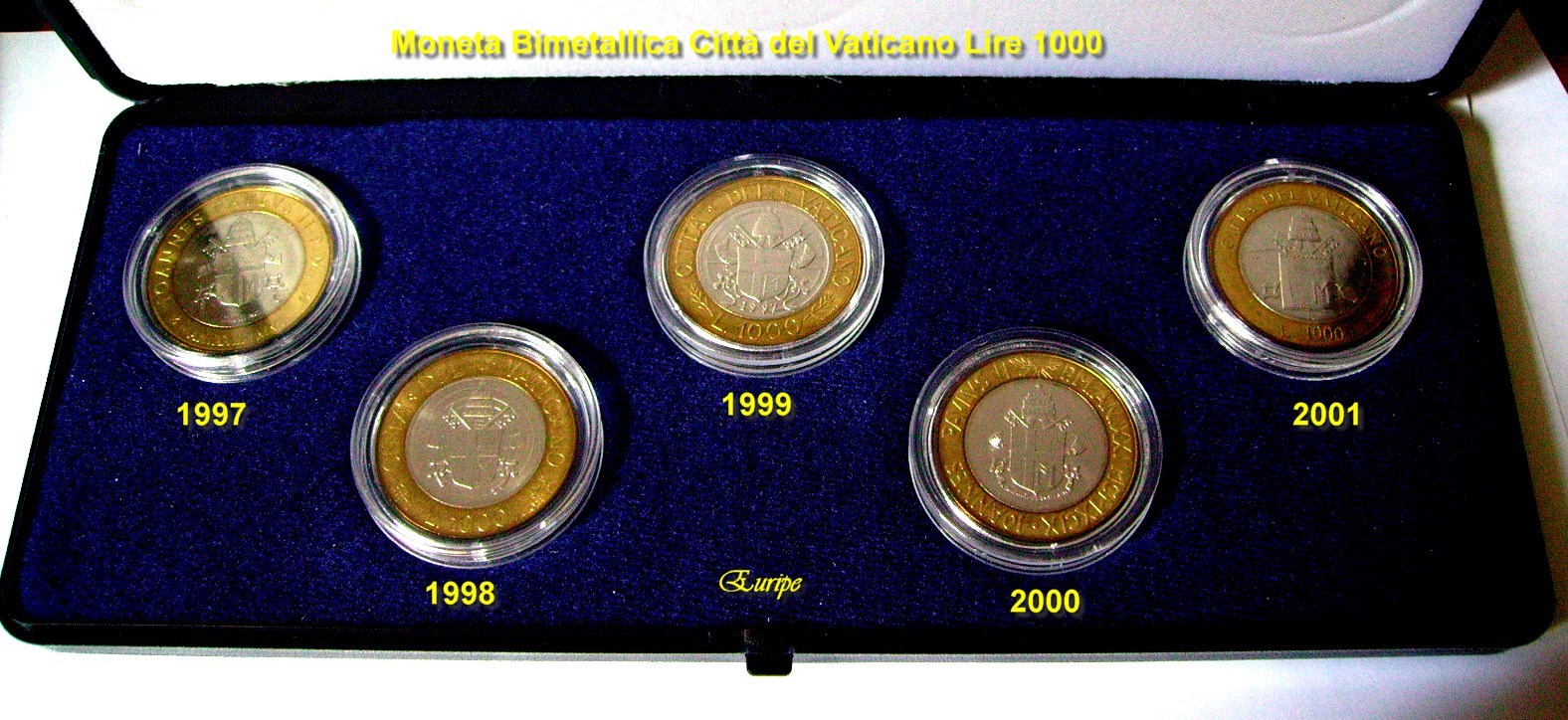 Collezione completa delle 5 monete bimetalliche da 1000 lire emesse dalla Città del Vaticano