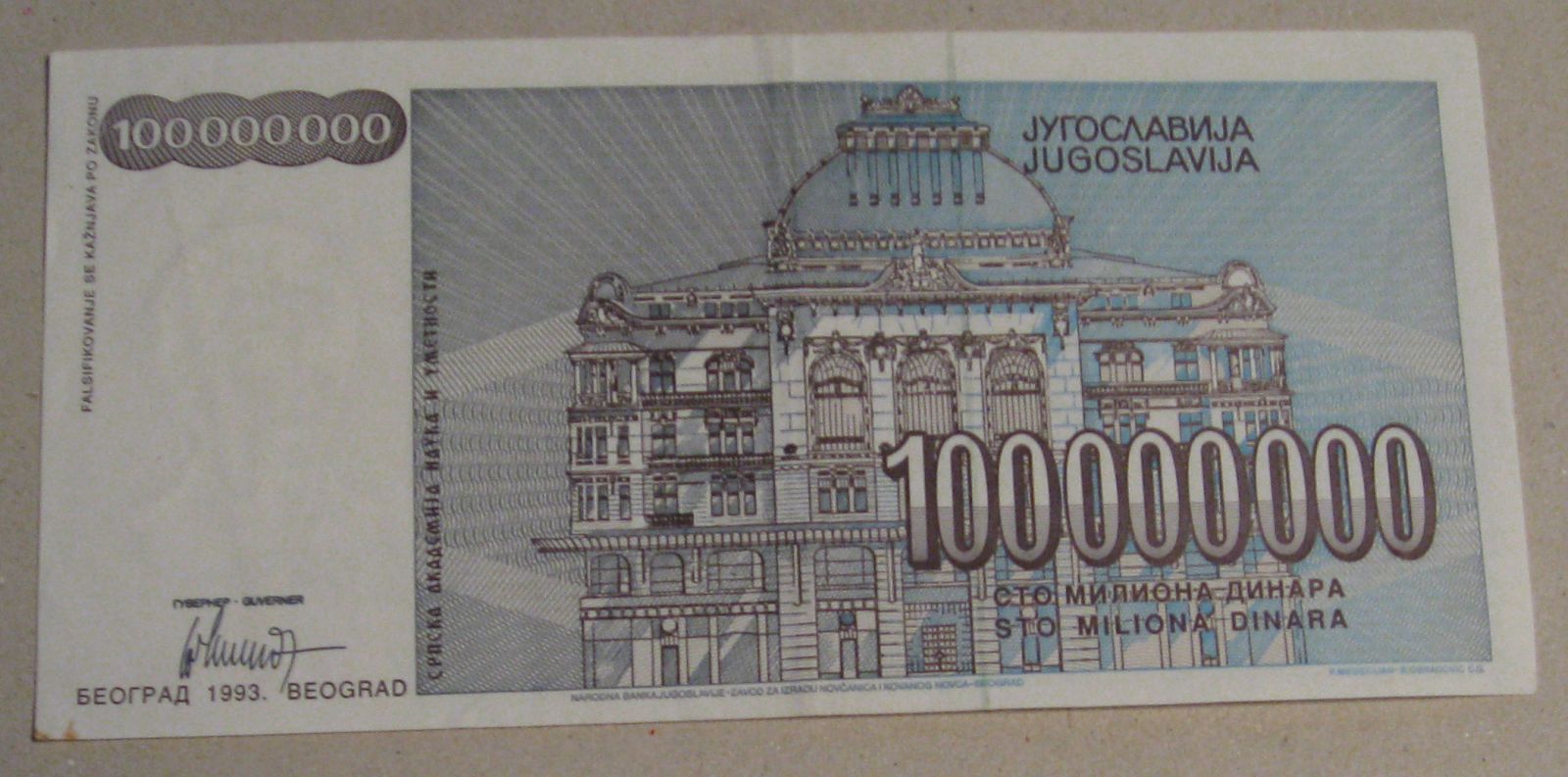 100.000.000 Di Dinari 1993/ 2