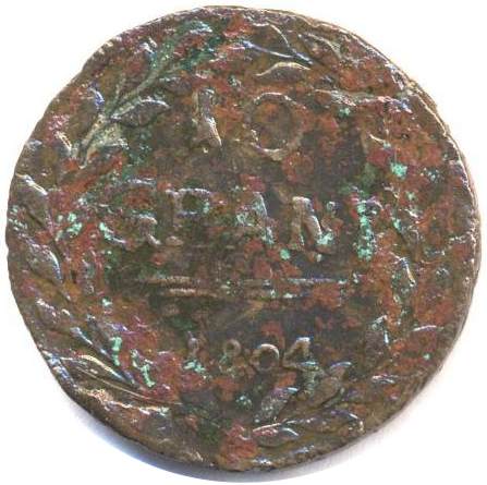 10 GRANI 1804 - Ghirlanda che racchiude in cerchio valore e data