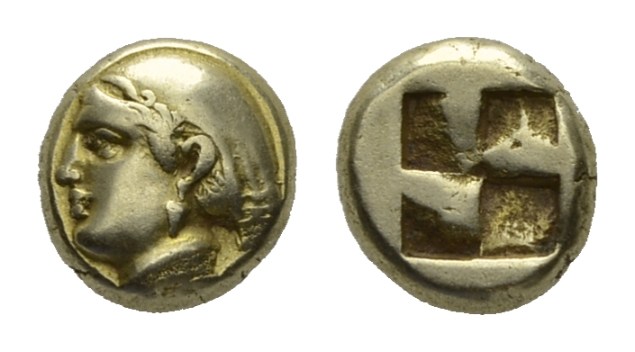 Ionia, Phocaea Hete circa 387-326 EL 10mm, 2.53 g. Head of Aphrodite left, hair in veil; below, seal left. Rev. Quadripartite incuse square. Bodenstedt Em. 98α. SNG von Aulock 7954. Boston MFA 1926. de Luynes 2653.