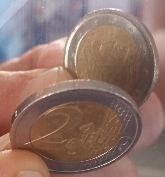 2 Euro Italia 2002 con asse ruotato di circa 220°
