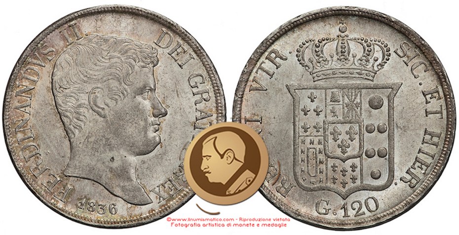 fotografia numismatica Regno delle Due Sicilie, Ferdinando II di Borbone: 1831-1859 | Piastra da 120 Grana del 1836, II° tipo