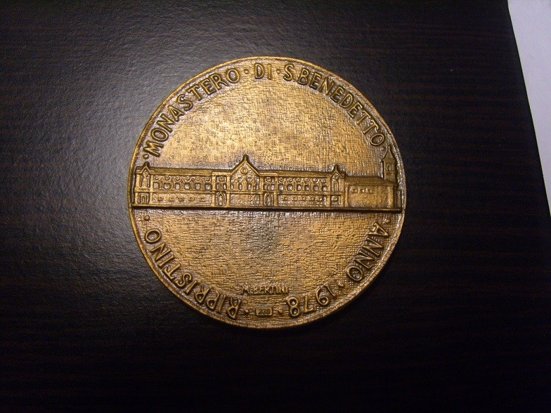 Scritta : RIPRISTINO MONASTERO DI SAN BENEDETTO ANNO 1978