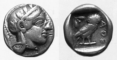 R/: Civetta a destra con rametto di ulivo a sinistra e ΑΘΕ a destra, tutto in quadrato incuso