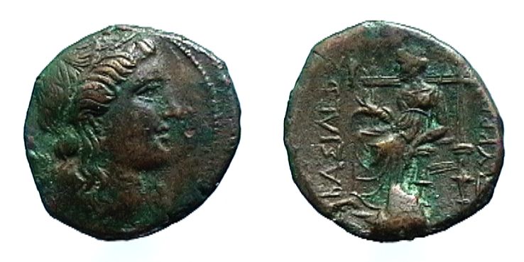 R/: Demetra sul trono a sinistra con stelo di grano e scettro. Ai lati ΒΑΣΙΛΕΩΣ--ΠΥΡΡΟΥ
