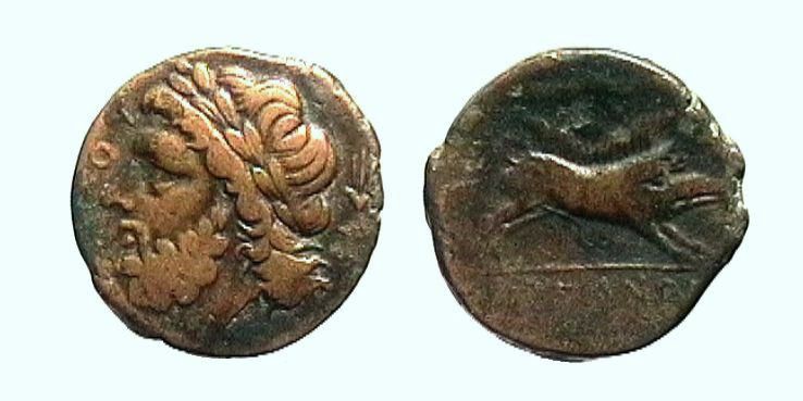 R/: Cinghiale corrente a destra. In alto punta di lancia. In esergo ΑΡΠΑΝΩΝ