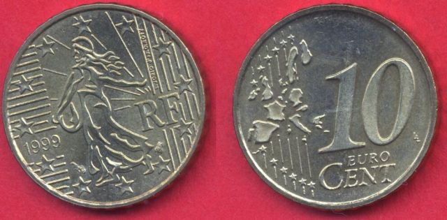 La seminatrice presente sulla moneta è il simbolo che figurava anche sulle monete presenti nel Paese prima dell’avvento della moneta comune. Sul lato di sinistra della moneta è inciso l’anno di conio, mentre sul destro le iniziali RF.
