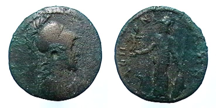 R/: Pallade di fronte volta a sinistra sostiene una Nike con la destra e scudo e lancia con la sinistra. Attorno ΑΘΗ ΝΑ ΙΩΝ
