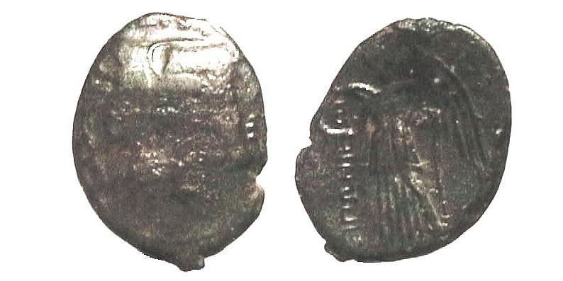 R/: Nike stante a sinistra tiene lancia e ghirlanda. Davanti ΕΙΠΩΝΙΕΩΝ