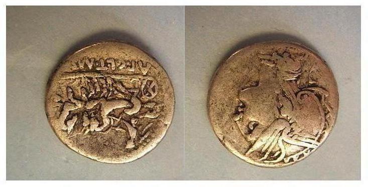 D/ testa di Minerva o Palas (personificazione di Roma) con elmo alato volta a dx-