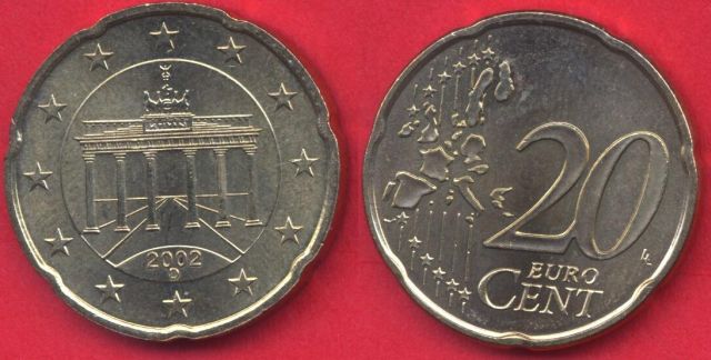 La moneta rappresenta la Porta di Brandeburgo, uno dei monumenti più famosi della Germanai, simbolo della divisione tra le due Germanie e della loro successiva riunificazione; la prospettiva dà risalto all'apertura della porta di accesso alla città per rafforzare l'idea di unità tra Germania ed Europa. L’immagine è circondata dalle stelle simbolo dei Paesi europei e in basso compare l’anno di conio. Sull'altro lato l'immagine comune a tutti gli Stati membri.