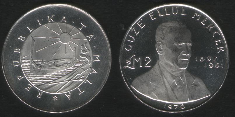 ELLUL MERCER. Sotto il busto in piccolo l'anno di emissione della moneta 1976. A destra gli anni di