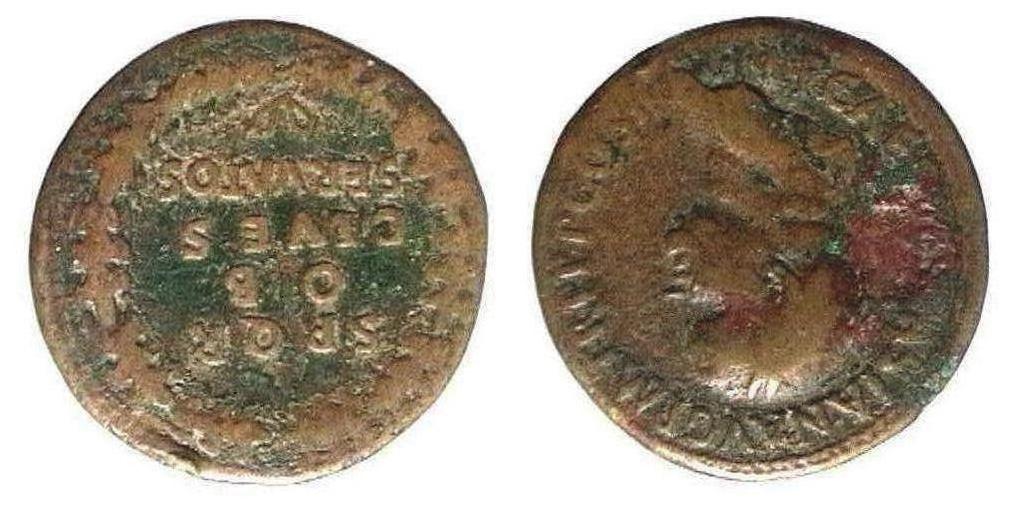 R/: SPQR OB CIVES SERVATOS su quattro linee entro corona di quercia