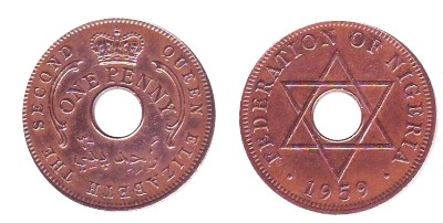 leggenda: "FEDERATION OF NIGERIA", in basso la data tra punti. Il tutto in cerchio perlinato.
