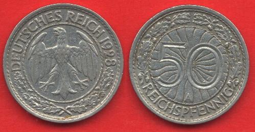 50 Pfennig Repubblica di Weimar (1927 - 1938)