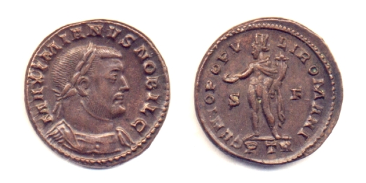 D/: MAXIMIANUS NOBIL C - Busto laureato e corazzato a destra