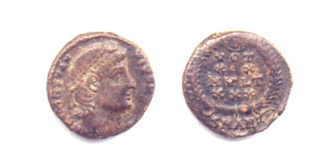 D/: D N CONSTANTIVS P F AVG - Testa diademata a destra