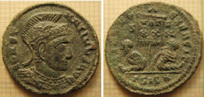 RIC VII, Siscia 120, R3, officina 3, battuta nell'AD 320