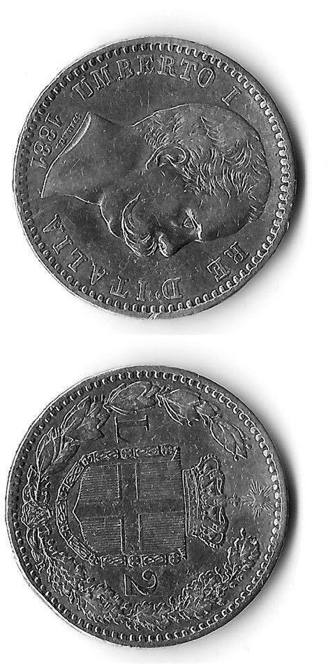 Diritto: Testa nuda a dx, intorno iscrizione UMBERTO I RE D'ITALIA, sotto il collo firma dell'incisore SPERANZA, in basso millesimo di conio