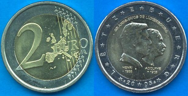 La moneta raffigura nel suo lato non comune la doppia effige dei Granduchi Henri (commemorazione dei 50 anni di età e dei 5 anni di regno) e Adolphe (commemorazione dei 100 anni dalla morte), i due profili sono volti a destra. Nel bordo, alternativamente, le dodici stelle a simbolo dell'Unione Europea ed il nome dello stato. In basso appare il millesimo (2005).
