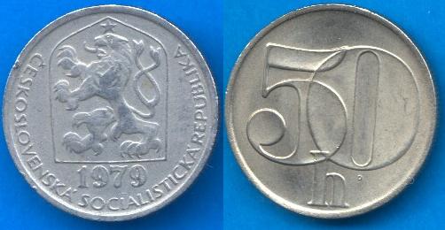 Fronte: Stemma della Repubblica raffigurante il leone boemo e la stella socialista. Sotto il leone appare l'anno di conio, 1979. Nel contorno la scritta "Československà Socialisticka Republika".
