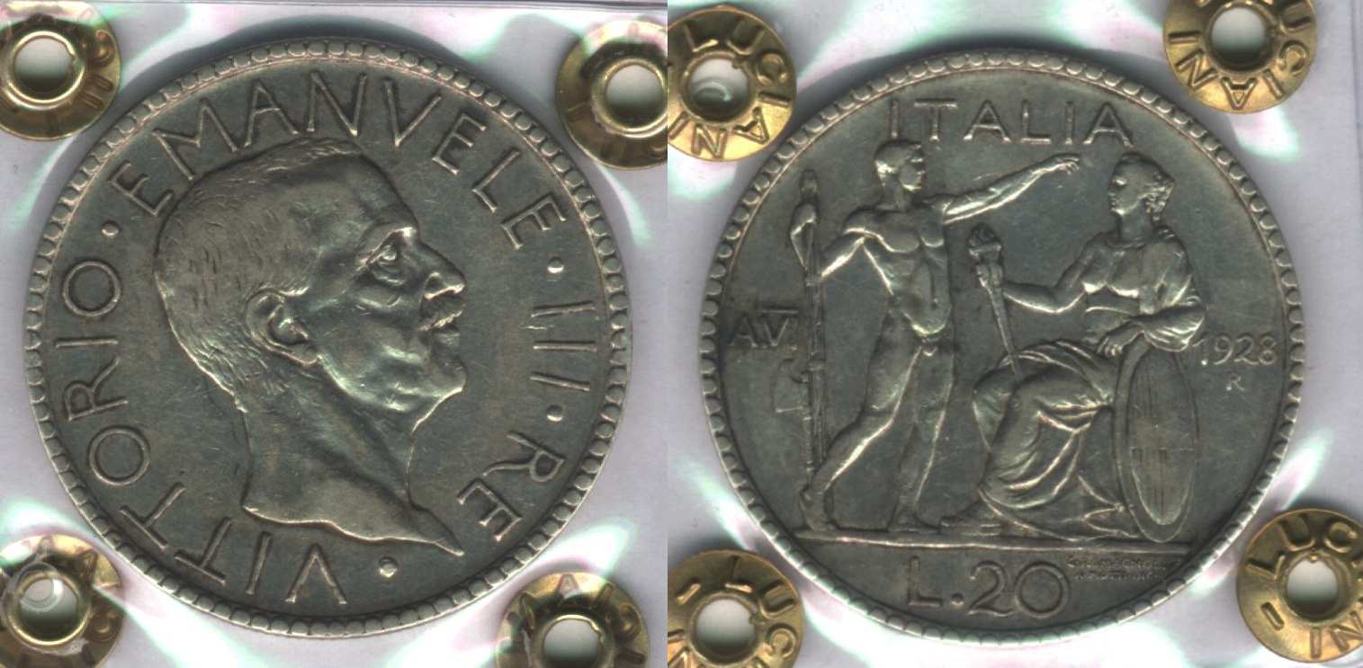 Rovescio: Italia seduta e littore, a dx millesimo di conio e segno di zecca R (Roma), a sx anno era fascista, sopra ITALIA, in esergo valore e firme modellista e incisore (Romagnoli e Motti)