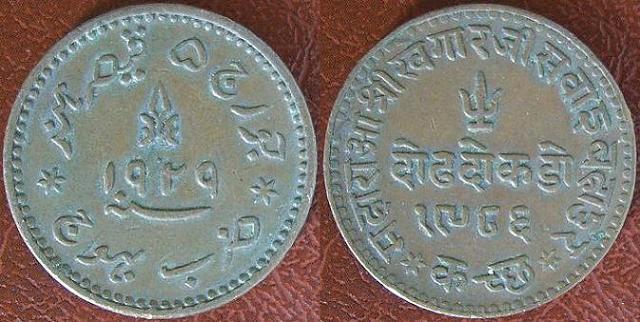 Dritto: Al centro, vi è un simbolo simile a una punta di lancia e la data “1929” in numeri arabi, riferita al calendario cristiano. Nella legenda, iscrizione araba (presumibilmente nome del regno del Kutch) divisa da due stelle a sei punte. Il bordo è perlinato.