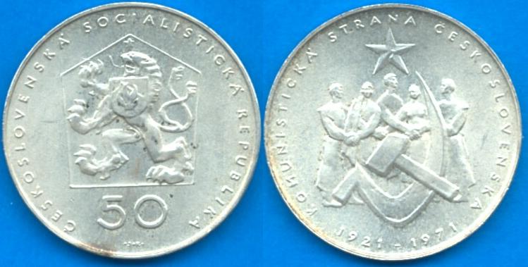 La moneta intende commemorare il cinquantesimo anniversario della nascita del Partito comunista Cecoslovacco.