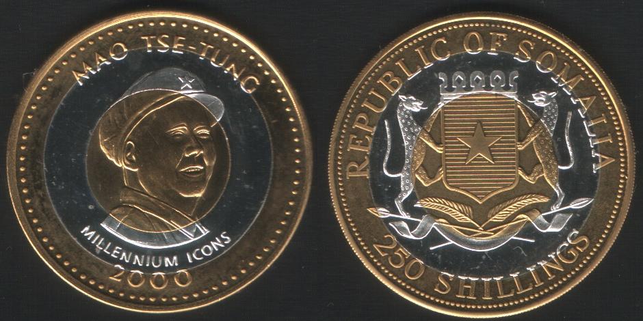DRITTO : Lo stemma della Somalia ed attorno la scritta "REPUBLIC OF SOMALIA". Sotto lo stemma il valore "250 SHILLINGS".