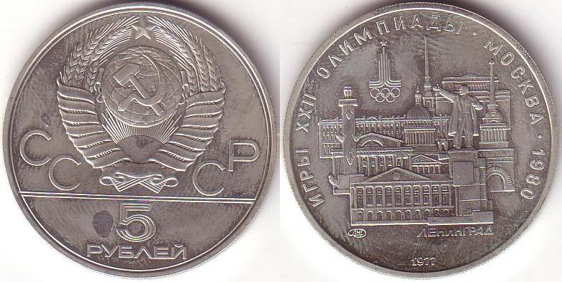 R/ Al centro vi è una veduta di Leningrado e in alto il logo delle olimpiadi del 1980. In basso, la data “1977” e a sinistra il monogramma della zecca di Leningrado. Sul bordo la scritta che significa “XXII Giochi Olimpici · Mosca · 1980”.