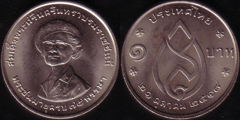 Rovescio: Disegno stilizzato simile a una punta di lancia. Ai lati, il nominale, in alto la scritta “Thailandia” e in basso la data del compleanno. Bordo liscio.