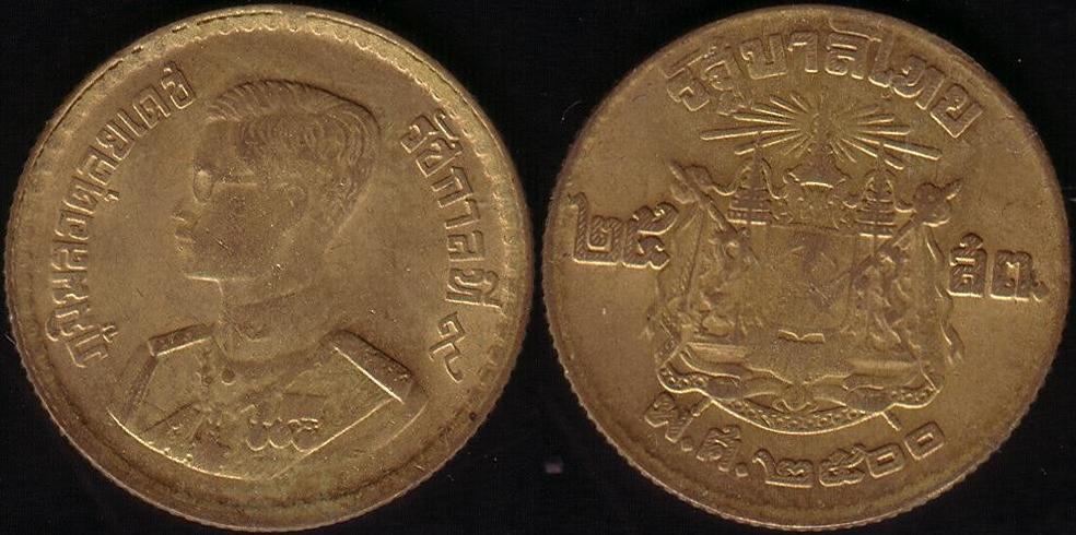 Rovescio: Stemma della Thailandia al centro. In basso, la data “2500” riferita al calendario buddista. Ai lati, il nominale “25” e “Satang” in caratteri thai e, in alto, iscrizione in lingua.