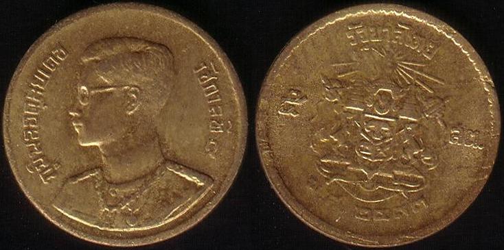 Rovescio: Stemma dello Stato fra il “5” del nominale a sinistra e i primi due caratteri di “Satang” a destra. In alto una iscrizione e in basso la data “2493” del calendario buddista. Bordo liscio.