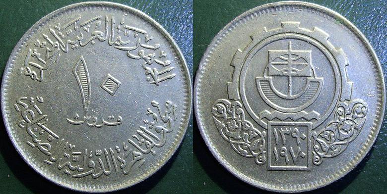 Rovescio: Al centro, il logo della Fiera Internazionale dell’Industria al Cairo. In basso, le date “1390 / 1970” in un rettangolo. Bordo dentellato.