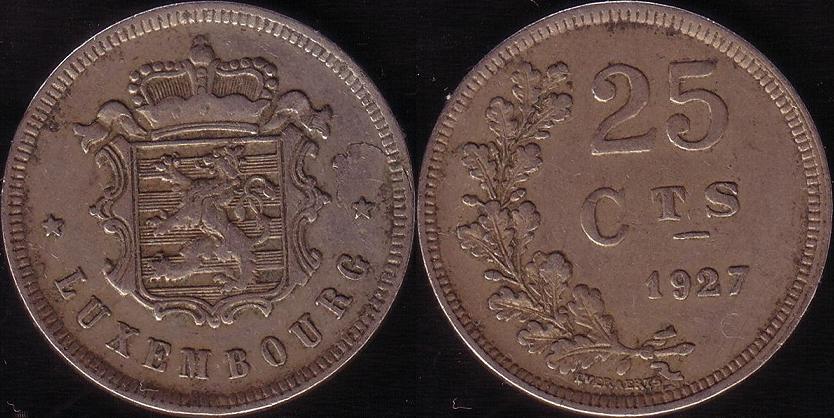 Dritto: Stemma di Stato, “LUXEMBOURG” in basso fra due stelle. Bordo dentellato.
