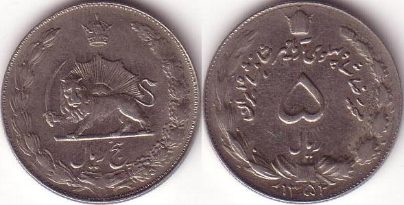 Rovescio: Il nominale “5 Rials” e al centro fra rami chiusi in alto da una corona e una iscrizione. In basso, la data. Bordo dentellato.
