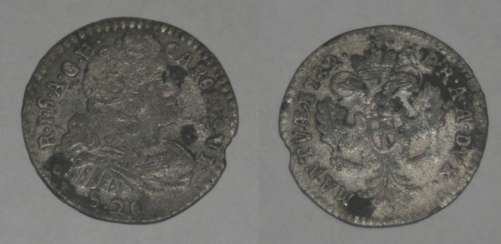 Diritto: Busto a dx, leggenda CAROLVS.VI. R.I.S.A.G.H., in basso S.20