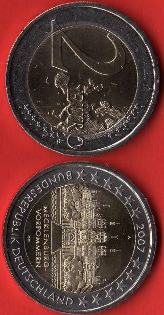 Nel lato nono comune la moneta raffigura uno dei monumenti più belli della Germania, il castello Schwerinner, che si trova nella regione del Mecklenburg Vorpommern. Sotto la raffigurazione dell'edificio appare la scritta "Mecklenburg Vorpommern". In alto e al centro il segno di zecca (A, in questo caso), mentre in basso, si può vedere il monogramma dell'incisore (HH - Heinz Hoyer). Nel contorno, in basso la scritta "Bundesrepublik Deutschland" e in alto, a separare le dodici stelle simbolo dell'Europa Unita, l'anno di conio 2007.