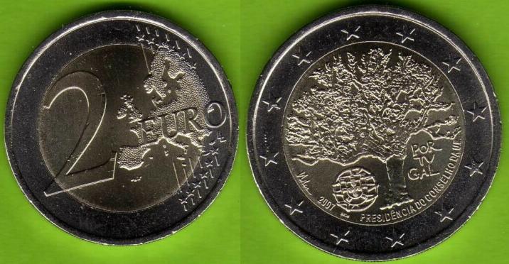 La moneta, nel suo lato non comune rappresenta un grande albero, sotto il quale sono, a sinistra si può notare lo stemma della repubblica portoghese, e a destra la scritta "PORTUGAL" su tre righe. In basso appare la scritta "PRESIDENCIA DO CONSELHO DA UE". A sinistra dello stemma, il millesimo. Sulla parte esterna le 12 stelle simbolo dell'Unione Europea.