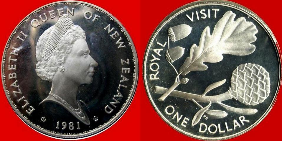Commemorativa della visita reale della regina Elisabetta II. Al rovescio ramo di quercia inglese unito con ramo di Kauri neozelandese. Officina di Llantrisant