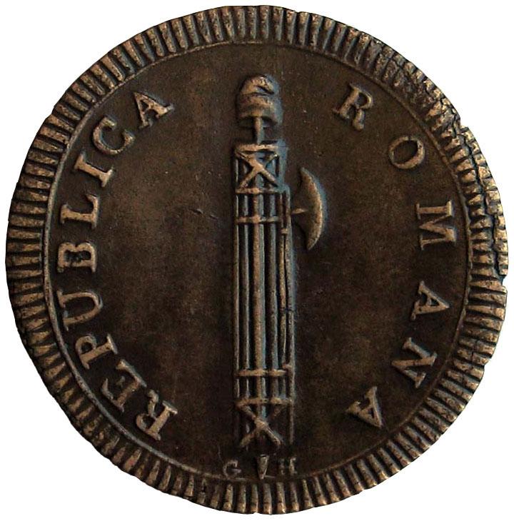 la data incerta è dovuto al riutilizzo durante la 1° Repubblica Romana dei "vecchi" coni pontifici.