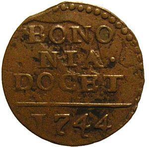 Quattrino in rame anonimo, coniato durante il pontificato di Benedetto XIV