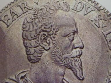 Questo particolare del viso di Alessandro Farnese è l'esempio più eloquente di qualsiasi parola, è uno scudo del 1591 di Piacenza, il pizzetto, i baffi, la capigliatura mossa, l'occhio severo, sembra una foto, una immagine reale.