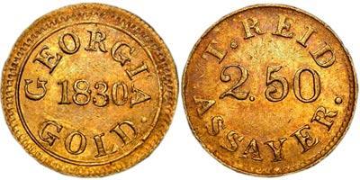Il 24 luglio 1830 il Georgia Journal di Milledgeville (allora capitale dello Stato) informava che tale Templeton Reid aveva aperto una Zecca in città, e aveva già pronti da fornire circa 1.500 dollari in monete d'oro da 2,50, 5 e 10 dollari.