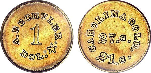 La famiglia Bechtler, padre, figlio e nipote, occupa un posto importante nella storia della monetazione americana. Furono loro i primi a coniare la moneta d'oro da 1 dollaro, nel 1831, diciotto anni prima dell'inizio delle coniazioni ufficiali della Zecca :clapping: