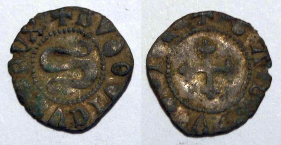 Mancavano ancora nel catalogo le immagini di questa rara tipologia :Obolo di bianchetto I tipo Ludovico (1440-1465)